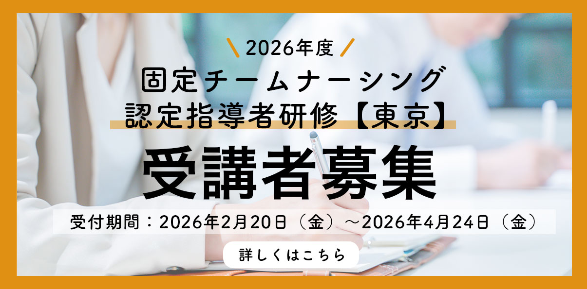 一般社団法人固定チームナーシング研究会 mailお問い合わせ 会長あいさつ 研究会日程 全国研究集会 地方会専用ページ 認定指導者について 書籍・雑誌の紹介 カレンダー・イラスト杉野元子の地方会報告 認定指導者の部屋 About us 固定チームナーシング研究会とは 看護・介護の現場において、患者及び利用者中心の質の高い継続看護・介護を提供するために開発された看護・介護提供方式「固定チームナーシング」の教育及び普及活動を行うことにより、看護・介護の発展に貢献することを目的として法人化いたしました。 詳しくはこちら What's new 最新情報 2026.02.20「2026年度 固定チームナーシング認定指導者研修」を募集開始しました 2026.02.13「2025年度 固定チームナーシング 認定指導者ファシリテーター研修」の募集は終了しました 2025.12.11「2025 年度 固定チームナーシング 認定指導者ファシリテーター研修」の募集を開始 いたしました 2025.10.31「2025年度 第31回 固定チームナーシング全国 研究集会」は終了しました お知らせ一覧へ Sponsor スポンサー 固定チームナーシング研究会の取り組みを応援していただけるスポンサーを募集しております Pick up info 皆様に向けた取り組み 全国研究集会 地方会 研修のご案内 認定指導者について Literature introduction 文献紹介 固定チームナーシング第4版発行のお知らせ 固定チームナーシング第4版 表紙は、杉野元子先生の多職種協働の地域包括ケアのイメージだそうです。 書籍のご紹介 改訂増補版固定チームナーシング用語集 改訂増補版固定チームナーシング用語集 改訂増補版固定チームナーシング用語集が9月3日に、看護科学新社から発売になりました。 旧版の内容をアップデートするとともに,メモ欄をつくるなど利便性を高めました。是非ご活用下さい。 オン・ナーシング Vol.2 No.3 掲載記事のご案内 オン・ナーシング Vol.2 No.3ダウンロード 看護の科学新社より発行されております「オン・ナーシング」 Vol.2 No.3 「固定チームナーシング研究会 地方会だより」が 更新されました。 今回は、北陸地方会・長崎地方会の記事が掲載されております。 オン・ナーシング Vol.2 No.2 掲載記事のご案内 オン・ナーシング Vol.2 No.2ダウンロード 看護の科学新社より発行されております「オン・ナーシング」 Vol.2 No.2 「固定チームナーシング研究会 地方会だより」が 更新されました。 今回は、北海道地方会・近畿地方会の記事が掲載されております。 オン・ナーシングVol.2 No.1掲載記事のご案内 オン・ナーシングVol.2 No.1ダウンロード 看護の科学新社より発行されております「オン・ナーシング」Vol.2 No.1「固定チームナーシング研究会 地方会だより」が更新されました。 今回は長野地方会・中国四国地方会の記事が掲載されております。 書籍・雑誌一覧へ